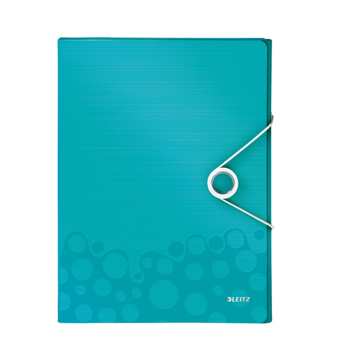 Nepriehľadný polypropylénový box na prenos objemnejších spisov, cenníkov, katalógov a pod. do formátu A4. V dizajne rady WOW v žiarivých farbách. Praktické zatváranie gumičkou na kovový krúžok. Rozmery (v × h × š) 330 × 250 × 37 mm. Väčšie balenie 5 ks. Farba ľadovo modrá.