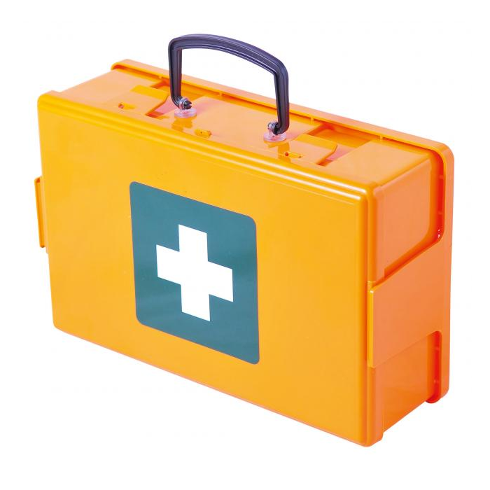 Kufrík bez prepážok, s držadlom na stenu. Materiál ABS, držiak na stenu, bez prepážok vo vnútri. Možnosť naplniť náplňou Štandard. Dodávaný prázdny. Farba oranžová. Rozmery 26 × 18 × 8 cm.