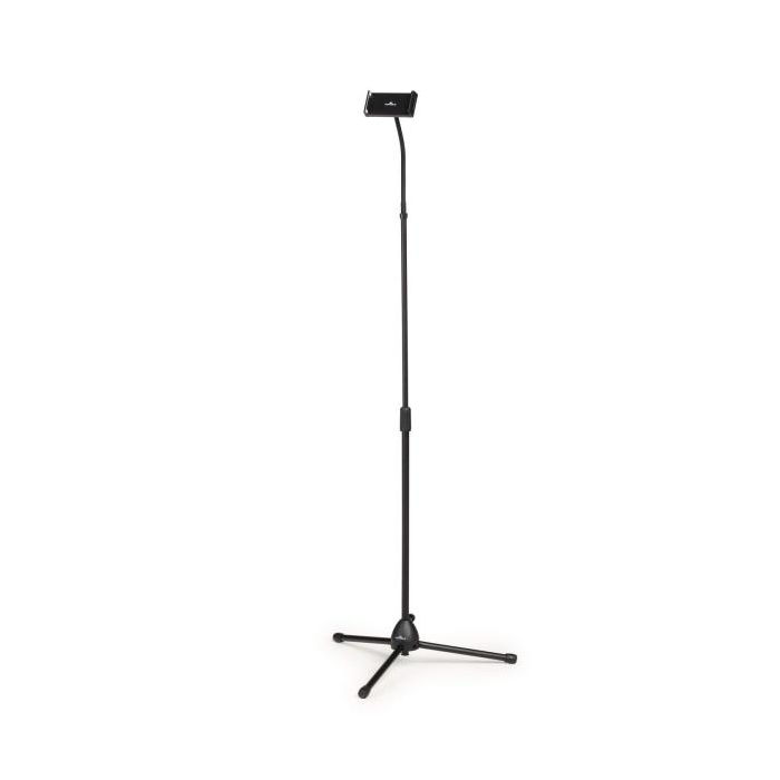 Podlahový stojan s držiakom na tablet a mobilný telefón, vybavený flexibilným ramenom a guľovým kĺbom