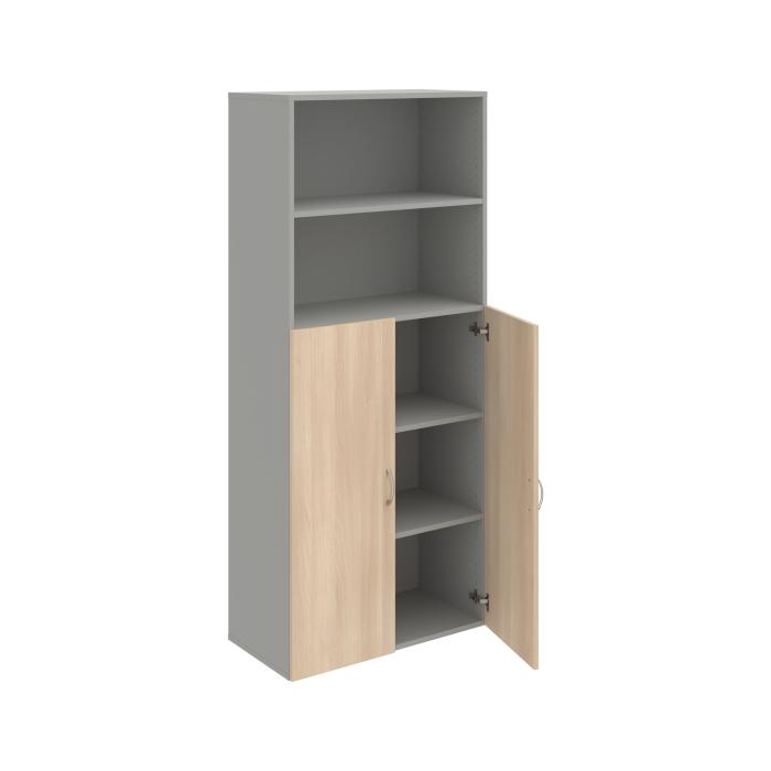 Kombinovaná skriňa - dvere/nika. Dôraz na funkčnosť a cenu. Kvalita a variabilita s nízkymi obstarávacími nákladmi. Materiály výrobcov z Európskej únie. Obojstranne pohľadový chrbát. Zabezpečenie políc proti náhodnému vysunutiu. 45 rôznych prvkov pre Vaše potreby a požiadavky. V našej ponuke nájdete skriňové moduly výšky 185 cm, 111 cm alebo 74 cm a šírky 80 cm alebo 40 cm. Hĺbka všetkých modelov skríň radu Drive je 40 cm (42 cm s dverami). Chrbát, vyrobený z 3 mm hrubých dosiek HDF, je obojstranne pohľadový, takže skrine môžete použiť ako priestorový deliaci prvok. Vďaka polohovateľným policiam (hrúbky 18 mm) je možné priestor prispôsobiť Vašim predstavám. Základná výška úložného priestoru je prispôsobená výške štandardného šanónu. Dvere sú chránené 2mm hranou ABS a osadené kvalitným kovaním s doživotnou zárukou. Okrem plných a presklených dverí Vám ponúkame aj skrine s roletovým systémom. Pokiaľ sa rozhodnete pre umiestnenie skríň na podlahu, nezabudnite si doobjednať rektifikačné nohy, ktoré nie sú štandardnou súčasťou objednávky. Aby sa zásielka dostala v poriadku až do Vašej kancelárie, dodávame skrine demontované v niekoľkých samostatných a bezpečne zabalených balíkoch. Súčasťou každého balenia je tiež prehľadný návod. Na skrive Drive dostanete záruku 5 rokov.