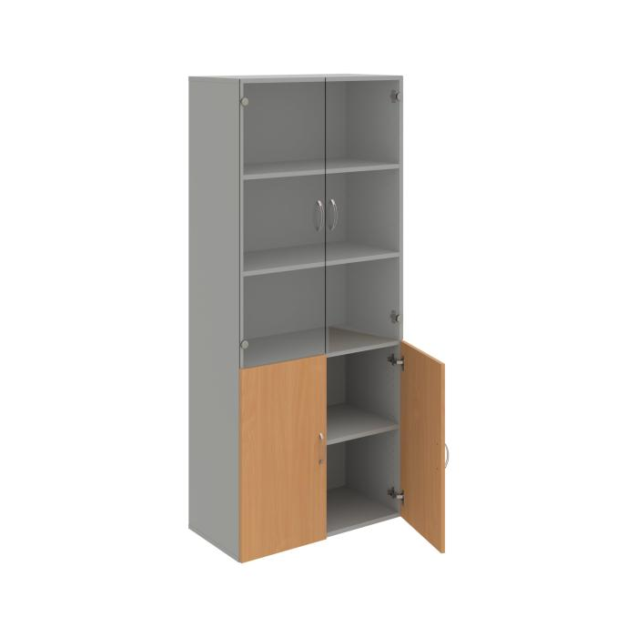 Policová skriňa Drive, 80x185x42 cm, buk/sivá