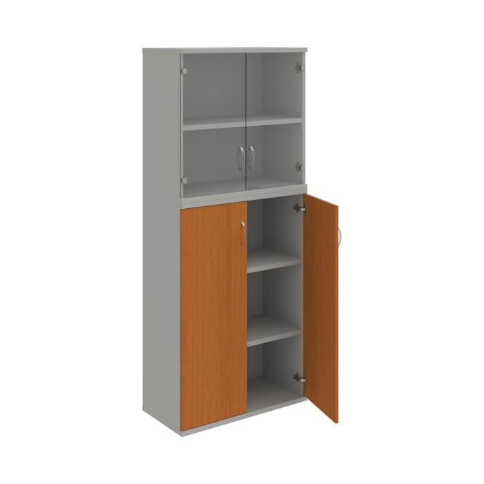 Kombinovaná skriňa - dvere/nika. Kancelárske skrine STRONG majú robustnú konštrukciu a vyššiu nosnosť políc ako bežné kancelárske skrine.V ponuke sú skriňové moduly s výškou 185 cm, 111 cm alebo 74 cm a šírky 80 cm alebo 40 cm. Hĺbka všetkých modelov skriňového radu STRONG je 40 cm.Chrbát, vyrobený z 8 mm hrubých dosák, je obojstranne pohľadový, takže skrine môžete použiť ako priestorový deliaci prvok. Hrúbka samotných políc je 25 mm, čo znamená nosnosť 80 kg na 1 policu.Korpusy, dvierka a police skríň sú olepené odolnou 2mm ABS hranou, ktorá garantuje dostatočnú ochranu proti poškodeniu.