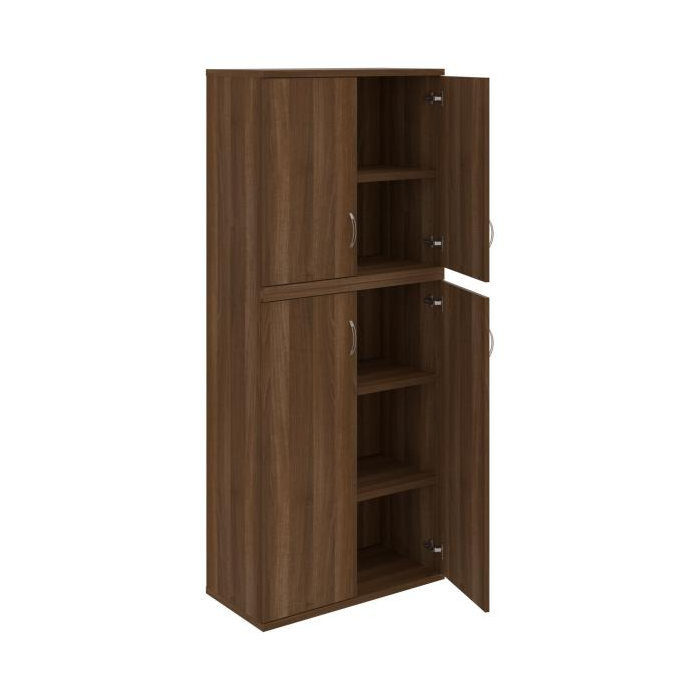Kombinovaná skriňa - dvere/nika. Kancelárske skrine STRONG majú robustnú konštrukciu a vyššiu nosnosť políc ako bežné kancelárske skrine.V ponuke sú skriňové moduly s výškou 185 cm, 111 cm alebo 74 cm a šírky 80 cm alebo 40 cm. Hĺbka všetkých modelov skriňového radu STRONG je 40 cm.Chrbát, vyrobený z 8 mm hrubých dosák, je obojstranne pohľadový, takže skrine môžete použiť ako priestorový deliaci prvok. Hrúbka samotných políc je 25 mm, čo znamená nosnosť 80 kg na 1 policu.Korpusy, dvierka a police skríň sú olepené odolnou 2mm ABS hranou, ktorá garantuje dostatočnú ochranu proti poškodeniu.