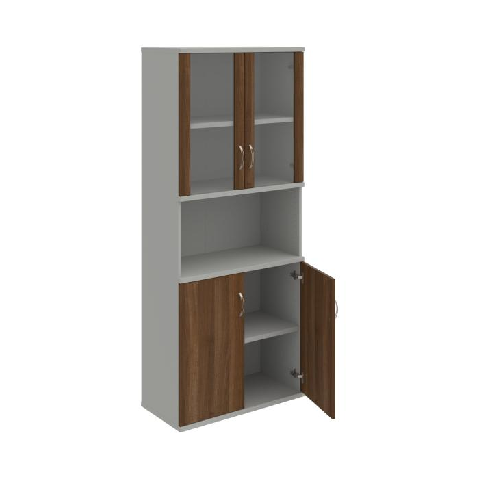 Kombinovaná skriňa - dvere/nika. Kancelárske skrine STRONG majú robustnú konštrukciu a vyššiu nosnosť políc ako bežné kancelárske skrine.V ponuke sú skriňové moduly s výškou 185 cm, 111 cm alebo 74 cm a šírky 80 cm alebo 40 cm. Hĺbka všetkých modelov skriňového radu STRONG je 40 cm.Chrbát, vyrobený z 8 mm hrubých dosák, je obojstranne pohľadový, takže skrine môžete použiť ako priestorový deliaci prvok. Hrúbka samotných políc je 25 mm, čo znamená nosnosť 80 kg na 1 policu.Korpusy, dvierka a police skríň sú olepené odolnou 2mm ABS hranou, ktorá garantuje dostatočnú ochranu proti poškodeniu.