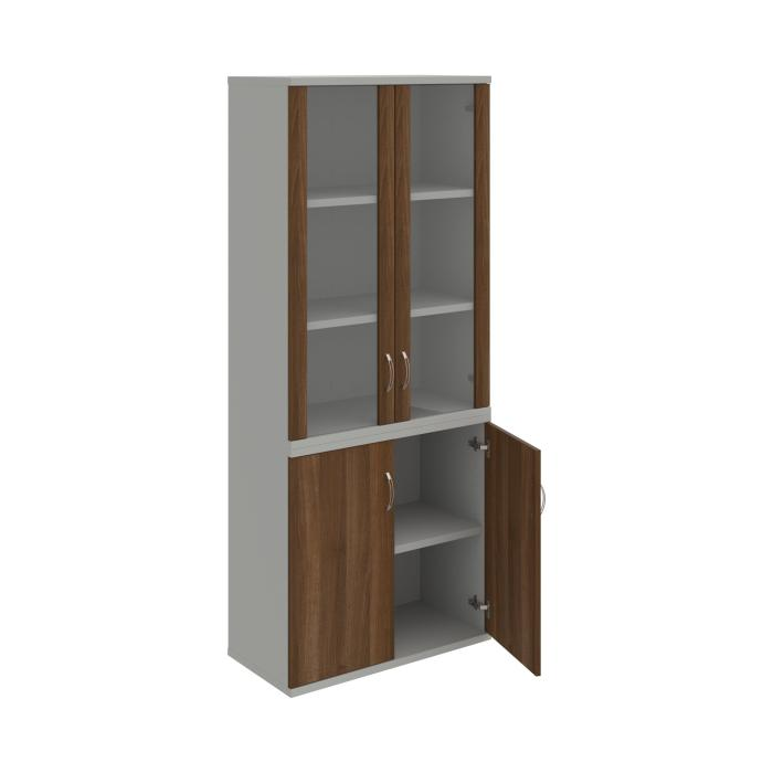 Kombinovaná skriňa - dvere/nika. Kancelárske skrine STRONG majú robustnú konštrukciu a vyššiu nosnosť políc ako bežné kancelárske skrine.V ponuke sú skriňové moduly s výškou 185 cm, 111 cm alebo 74 cm a šírky 80 cm alebo 40 cm. Hĺbka všetkých modelov skriňového radu STRONG je 40 cm.Chrbát, vyrobený z 8 mm hrubých dosák, je obojstranne pohľadový, takže skrine môžete použiť ako priestorový deliaci prvok. Hrúbka samotných políc je 25 mm, čo znamená nosnosť 80 kg na 1 policu.Korpusy, dvierka a police skríň sú olepené odolnou 2mm ABS hranou, ktorá garantuje dostatočnú ochranu proti poškodeniu.