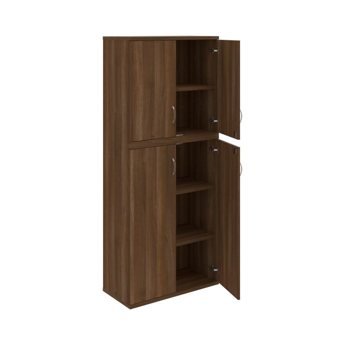 Kombinovaná skriňa - dvere/nika. Kancelárske skrine STRONG majú robustnú konštrukciu a vyššiu nosnosť políc ako bežné kancelárske skrine.V ponuke sú skriňové moduly s výškou 185 cm, 111 cm alebo 74 cm a šírky 80 cm alebo 40 cm. Hĺbka všetkých modelov skriňového radu STRONG je 40 cm.Chrbát, vyrobený z 8 mm hrubých dosák, je obojstranne pohľadový, takže skrine môžete použiť ako priestorový deliaci prvok. Hrúbka samotných políc je 25 mm, čo znamená nosnosť 80 kg na 1 policu.Korpusy, dvierka a police skríň sú olepené odolnou 2mm ABS hranou, ktorá garantuje dostatočnú ochranu proti poškodeniu.