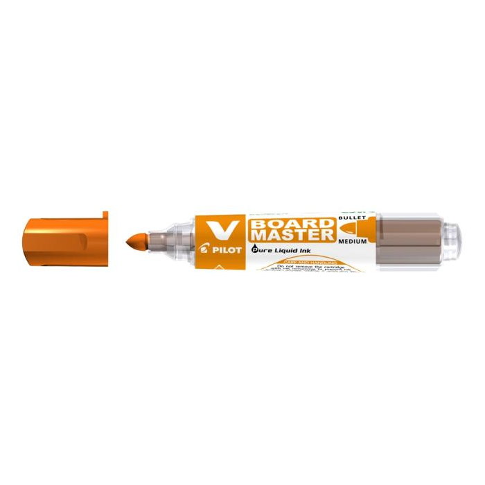 Popisovač na biele tabule s vymeniteľnou náplňou na alkoholovej báze. Priemer hrotu 6 mm, šírka stopy 2,3 mm. Farba oranžová.