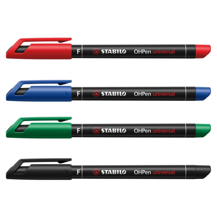 Permanentné popisovače na popisovanie takmer všetkých hladkých povrchov. Nekĺzavá úchytová zóna, praktický klip, bez vrchnáka vydrží až 3 dni. Väčšie balenie 10 ks v jednej farbe. STABILO® OHPen universal Fine (F). Hrot okrúhly, šírka stopy 0,7 mm. Farba zelená.