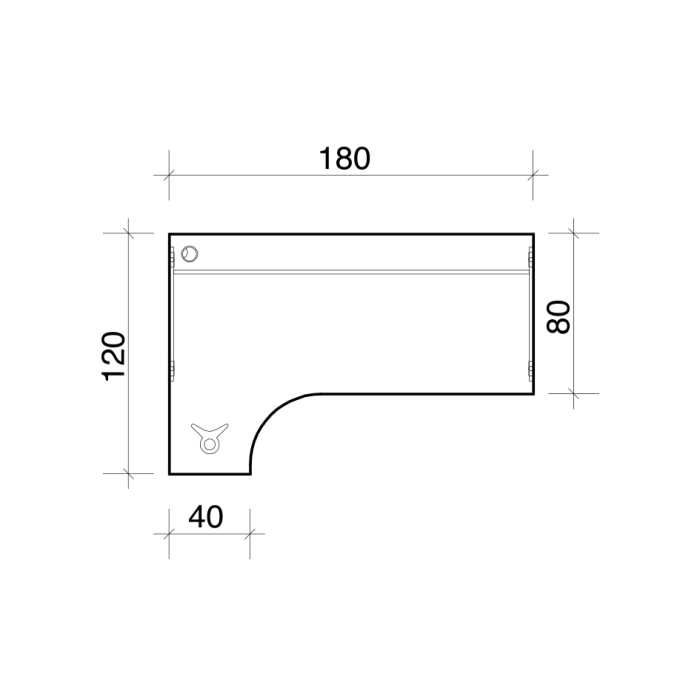 Pracovný stôl Flex, ergo, pravý, 180x75,5x120 (40x80) cm, sivá/kov