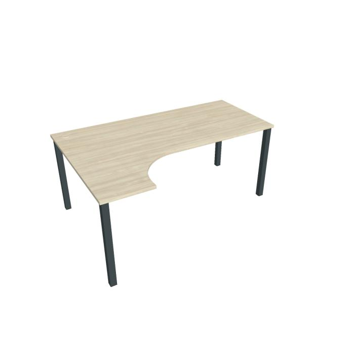 Stôl ergonomický pravý. Doska stola z kvalitného lamina. Pevná kovová konštrukcia podnožia zo štvorcových profilov 50 x 50 mm je tvorená kompaktnými pármi nôh, ktoré sú spojené priečnikmi. Výškovo nastaviteľná rektifikácia zaisťuje možnosť dorovnania prípadnej nerovnosti podlahy až o 1,5 cm. Stolová pracovná doska z LTD má hrúbku 25 mm a je zakončená 2mm hranou ABS, ktorá ju chráni pred poškodením. Samozrejmosťou sú káblové priechody a systém pre zavesenie káblov pod stolovou doskou. Možnosť objednania i v bielej farbe. Stolové doplnky, kontajnery a skrine vyberajte z ponuky kancelárskeho nábytku Hobis. Aby sa zásielka dostala v poriadku až do Vašej kancelárie, dodávame stoly demontované v niekoľkých samostatných a bezpečne zabalených škatuliach. Súčasťou každého balenia je tiež prehľadný návod. Na stoly UNI sa vzťahuje záruka 5 rokov. Farebnosť je ilustratívna.