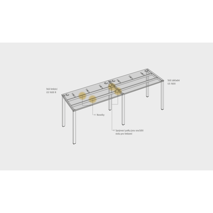 Pracovný stôl k pozdĺžnemu reťazenie. Doska stola z kvalitného lamina. Pevná kovová konštrukcia podnožia zo štvorcových profilov 50 × 50 mm je tvorená kompaktnými pármi nôh, ktoré sú spojené priečnikmi. Výškovo nastaviteľná rektifikácia zaisťuje možnosť dorovnania prípadnej nerovnosti podlahy až o 1,5 cm. Stolová pracovná doska z LTD má hrúbku 25 mm a je vybavená 2mm hranou ABS, ktorá ju chráni pred poškodením. Samozrejmosťou sú káblové priechodky a systém pre zavesenie káblov pod stolovou doskou. Možnosť objednania bieleho alebo sivého prevedenia podnožia. Stolové doplnky, kontajnery a skrine vyberajte z ponuky kancelárskeho nábytku Hobis. Aby sa zásielka dostala v poriadku až do Vašej kancelárie, dodávame stoly demontované v niekoľkých samostatných a bezpečne zabalených krabiciach. Súčasťou každého balenia je tiež prehľadný návod. Na stoly UNI sa vzťahuje záruka 5 rokov. Farebnosť je ilustratívna. Cena montáže je 15% z cenníkovej ceny výrobku. Požiadavku na montáž uveďte prosím do poznámky k objednávke. Objednávka tohto produktu je záväzná a produkt nie je možné vrátiť.