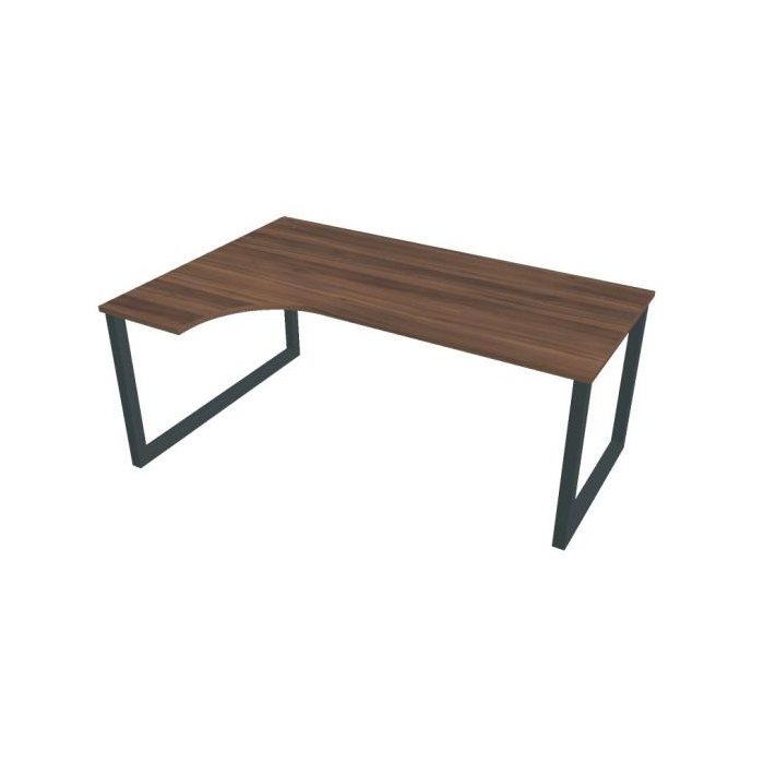 Pracovný stôl UNI O, ergo, pravý, 180x75,5x120 cm, orech/čierna