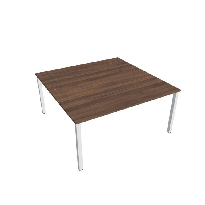 Zdvojený pracovný stôl rovný. Doska stola z kvalitného lamina. Pevná kovová konštrukcia podnožia zo štvorcových profilov 50 x 50 mm je tvorená kompaktnými pármi nôh, ktoré sú spojené priečnikmi. Výškovo nastaviteľná rektifikácia zaisťuje možnosť dorovnania prípadnej nerovnosti podlahy až o 1,5 cm. Stolová pracovná doska z LTD má hrúbku 25 mm a je zakončená 2mm hranou ABS, ktorá ju chráni pred poškodením. Samozrejmosťou sú káblové priechodky a systém pre zavesenie káblov pod stolovou doskou. Možnosť objednania bieleho či sivého prevedenia podnožia. Stolové doplnky, kontajnery a skrine vyberajte z ponuky kancelárskeho nábytku Hobis. Aby sa zásielka dostala v poriadku až do Vašej kancelárie, dodávame stoly demontované v niekoľkých samostatných a bezpečne zabalených škatuliach. Súčasťou každého balenia je tiež prehľadný návod. Na stoly UNI sa vzťahuje záruka 5 rokov. Farebnosť je ilustratívna.