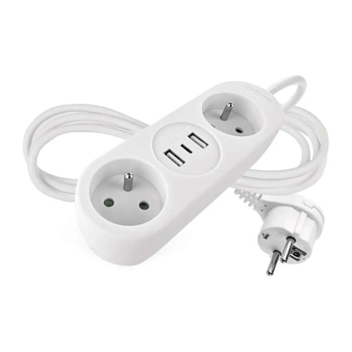 Počet zásuviek: 2× 2P + PE, max. záťaž: 3 680 W, napätie: 230 V, prúd: 16 A max., prierez vodiča: 1,5 mm², farba: biela, vodič: H05VV-F3G 1,5 mm², materiál zásuvky a vidlice: plast, typ izolácie: PVC, krytie: IP20, detské clonky, USB výstup: 2× USB typ A + 1× USB typ C ; 5 V DC; total ∑ 3,4 A (17 W) max., záručná doba: 2 roky, predajný obal: 1 ks, záves