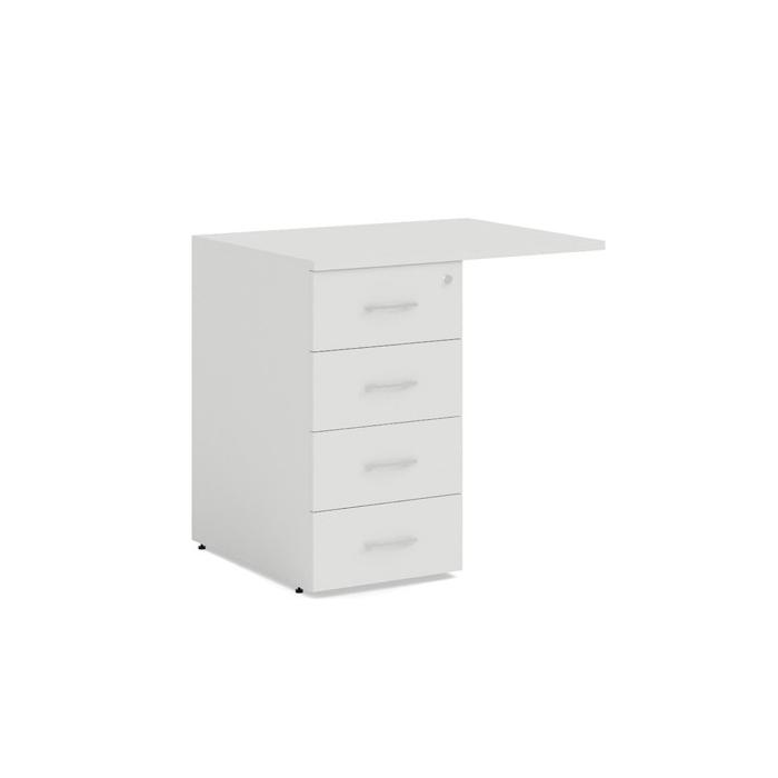 • Prístavné kontajnery sa vyrábajú v rovnakom dizajne a výške ako pracovné stoly a umožňujú tak zväčšenie pracovnej plochy stola. Stoja na rektifikačných nožičkách umožňujúcich vyrovnanie nerovnosti podlahy