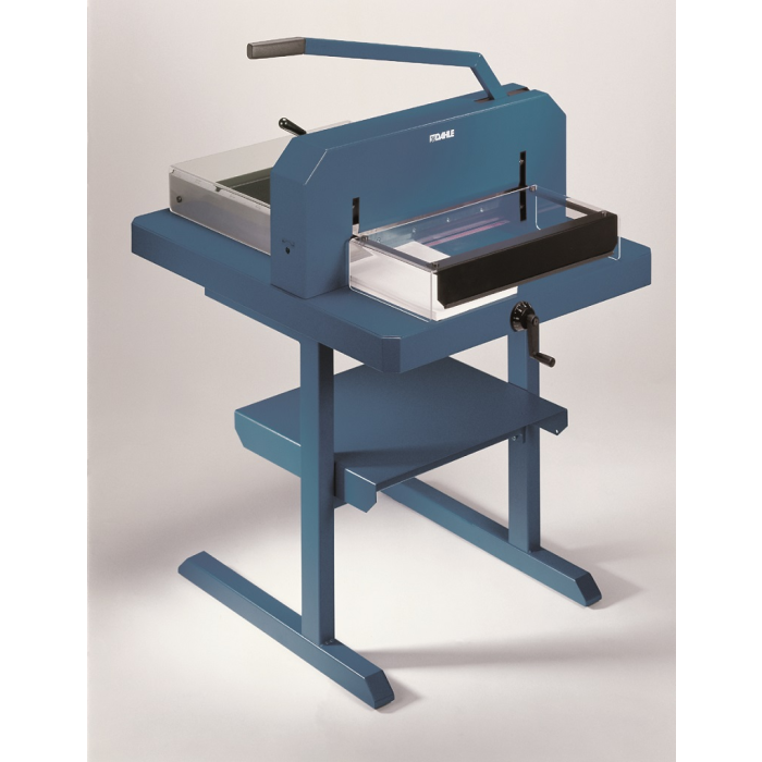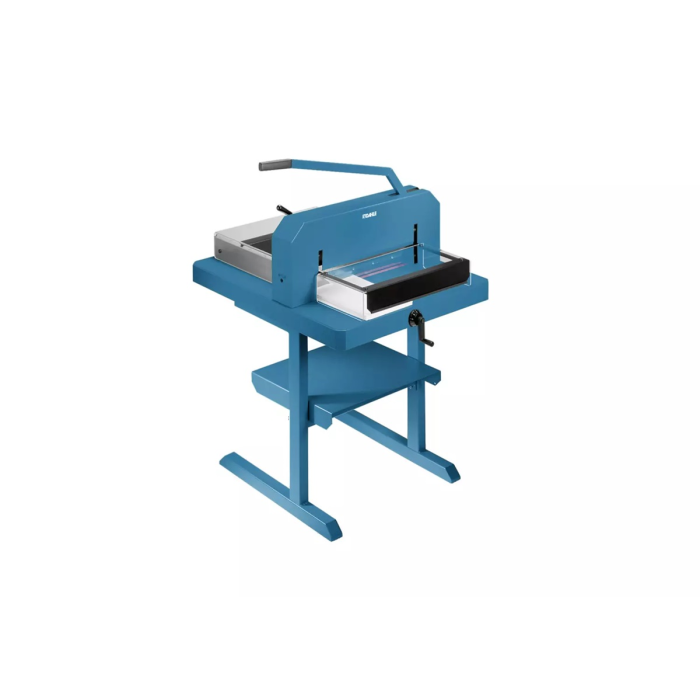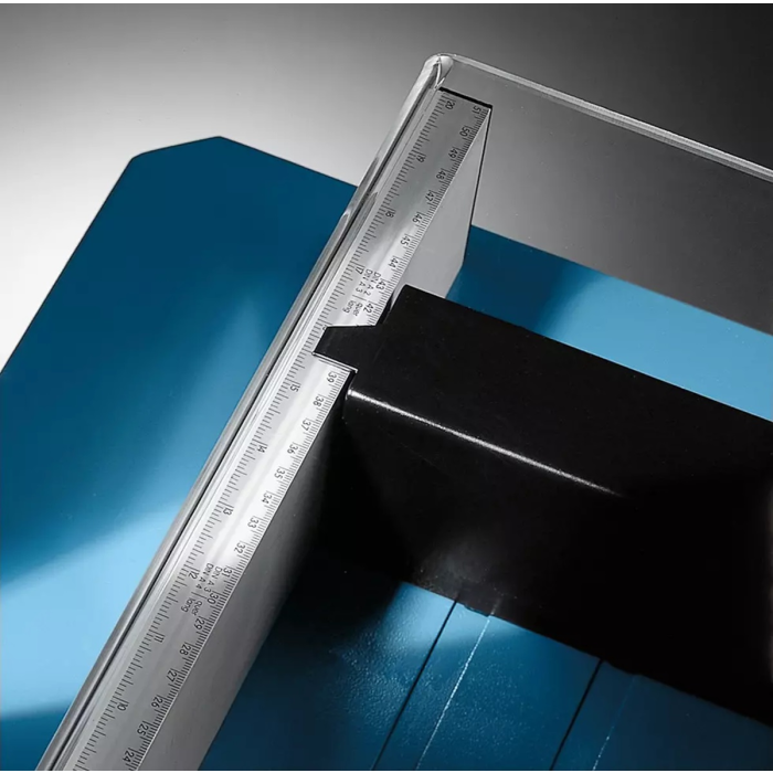 Výkonná a odolná veľkokapacitná rezačka veľkej presnosti, rýchlosti a praktickej funkčnosti, vybavená vysokým stupňom bezpečnosti, až na 600 listov papiera. Brúsený vrchný a spodný nôž z kvalitnej nožiarskej ocele Solingen, priehľadný bezpečnostný ochranný kryt, zverák papiera, bočný a zadný doraz, ovládaný kľukou. Minimálny rez 40 mm. Mierka v cm/inch a DIN formátoch. Vizuálny indikátor rezu pre profesionálne výsledky rezania