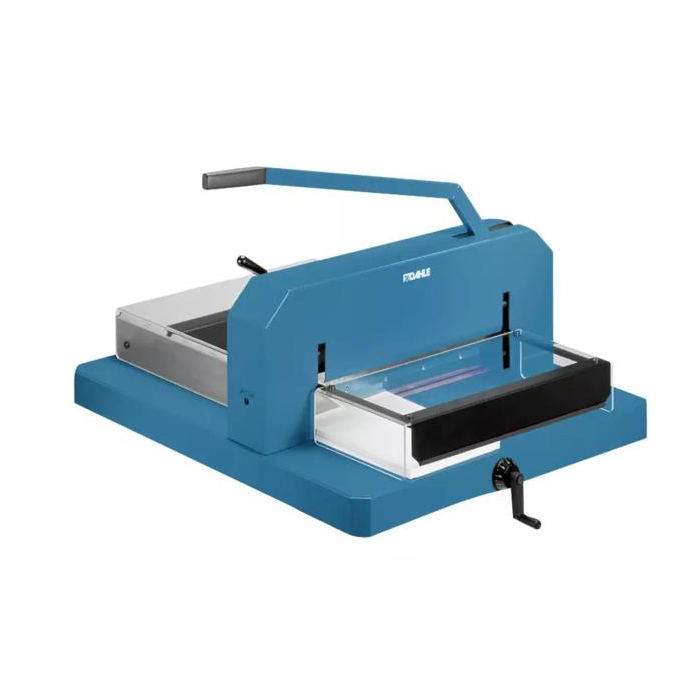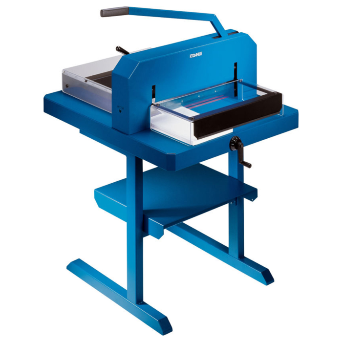 Vysokokalitná vysokovýkonná rezačka veľkej presnosti, rýchlosti a praktickej funkčnosti, vybavená vysokým stupňom bezpečnosti. Robustný kovový stôl poskytuje stabilnú základňu pri rezaní. Robustná rukoväť pre jednoduché rezanie. Brúsená horná čepeľ z kalenej ocele Solingen - prebrúsiteľná. Brúsený vrchný a spodný nôž z kvalitnej nožiarskej ocele Solingen, priehľadný bezpečnostný ochranný kryt, zverák papiera, bočný a zadný doraz, ovládaný kľukou. Rýchlotlačná páka pre efektívne pracovné procesy. Presné stupnice s mm stupnicou pre presný 90° rez. Samoaretačný kovový doraz s vretenom, ktorý vám pomôže rýchlo nájsť správny formát. Minimálny rez 40 mm. Mierka v cm/inch a DIN formátoch. Voliteľné príslušenstvo - praktický stojan s odkladacím priestorom a optimálnou pracovnou výškou 74 cm.