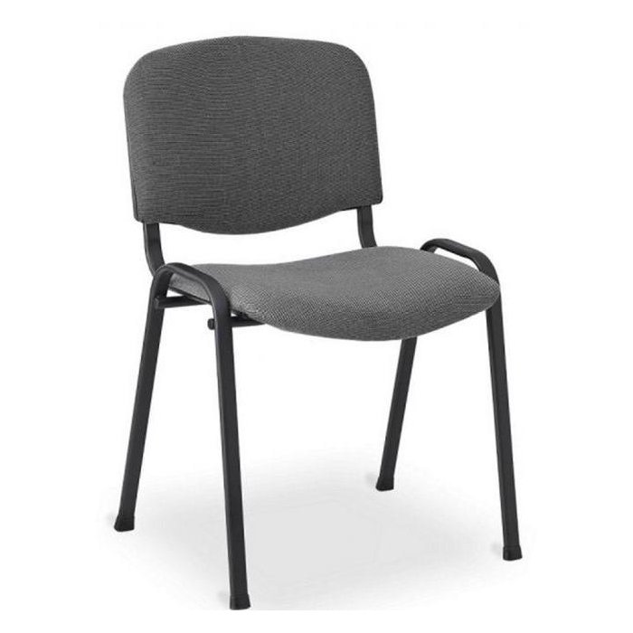 Stohovateľná konferenčná stolička s látkovým poťahom, sedadlo so spodním plastovým krytom.