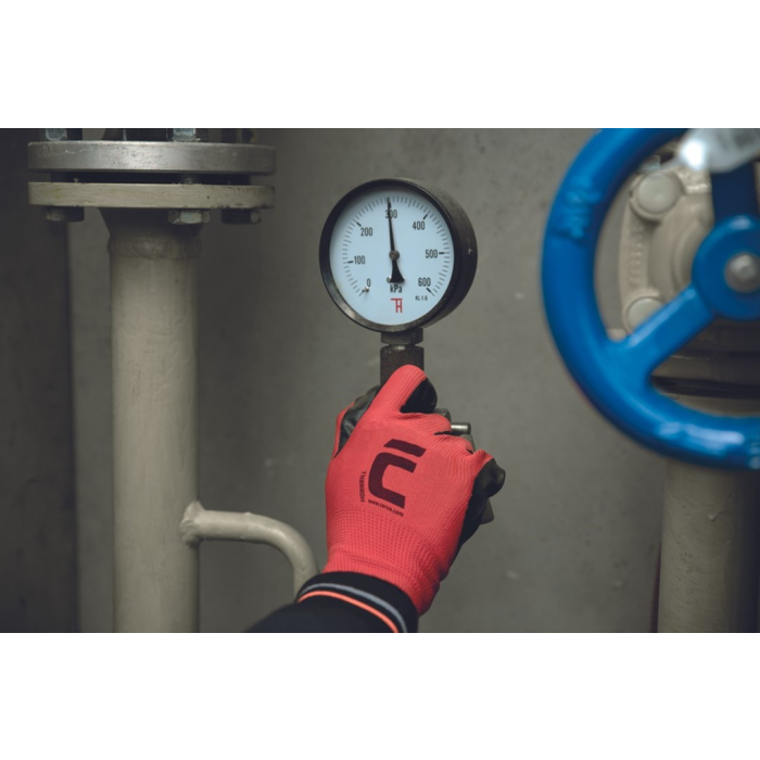 Pletené, bezšvové, nylonové rukavice (15GG • máčené v latexu na dlani a na prstoch • pružná manžeta)