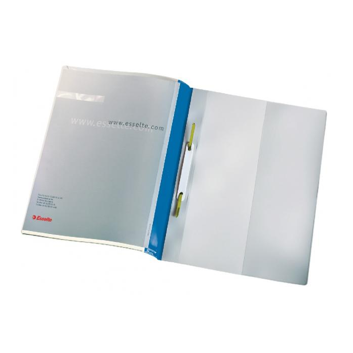 Obal s priehľadným predným a zadným vreckom na vloženie listu, vyrobený z kvalitného PVC. Slúži na uloženie dierovaných dokumentov o formátu A4. Biely papierový zasúvací štítok pozdĺž chrbta slúži na označenie obsahu. Rozmery 310 × 238 mm.V balení 25 ks.