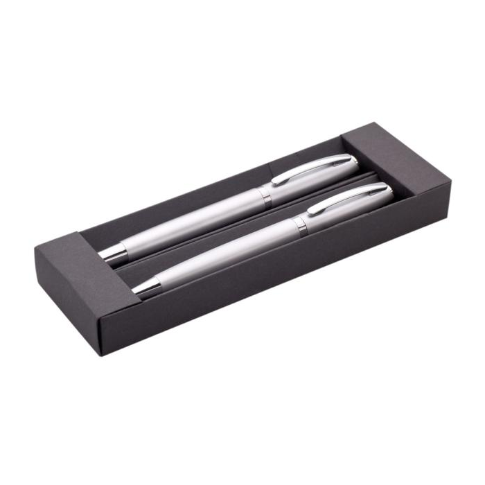Darčeková súprava guľôčkového pera a rolleru v čiernej papierovej krabičke. Kolekcia DESIGN.