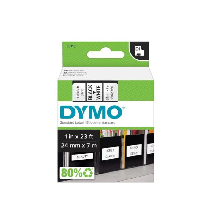 Permanentné pásky odolné voči vode, olejom, organickým zlúčeninám. Podkladová páska, text a lepidlo odolávajú teplotám -30 °C až do +150 °C. Majú dobrú priľnavosť na ABS, PVC, PE, Acrylic, sklo, drevo, papier a nerezovú oceľ. Sú určené pre Dymo zariadenia. Dĺžka 7 m.
