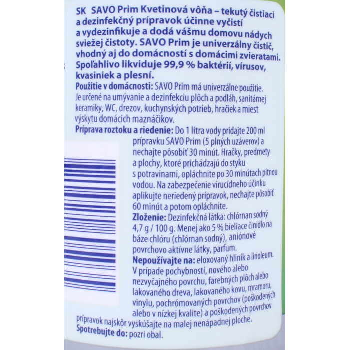 | Typ čistiaceho prostriedku | dezinfekčný prostriedok |