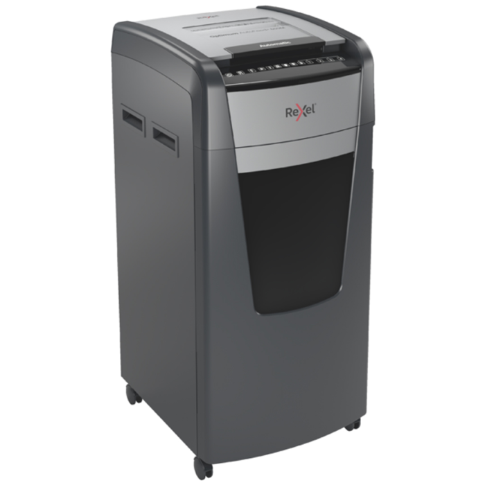 Skartovačka Optimum AutoFeed 600M automaticky skartuje až 600 hárkov papiera A4 (80 g/m2) mikrorezom P-5 (2 × 15 mm). Tento stroj na skartovanie s automatickým podávaním je sofistikovaný kancelársky drvič s výsuvným košom s objemom 110 l. Nie je potrebné ručne vkladať papier alebo vopred odstraňovať svorky a kancelárske sponky, táto automatická skartovačka papiera urobí všetko za vás.