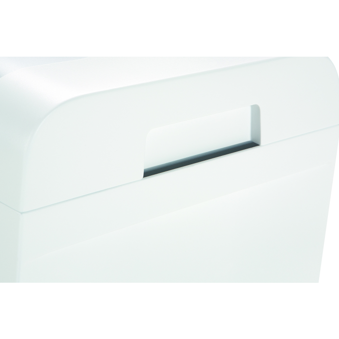 Ochrana údajov pre každého. Táto moderná a kompaktná skartovačka dokumentov s narezanými páskami so samostatnou rezacou jednotkou CD spoľahlivo a potichu zničí vaše dáta doma aj v malej kancelárii. Skartuje CD, DVD, plastové karty a spinky. Rozdrvený materiál sa samostatne separuje. Plný zásobník sa zobrazí na displeji a stroj sa automaticky vypne. Automatický spätný chod eliminuje zasekávanie papiera a zaisťuje plynulú prevádzku. ED indikátor zobrazuje prevádzkový stav zariadenia: napájanie, preťaženie, prehriatie. Integrovaná svetelná závora automaticky spustí zariadenie po vložení papiera do podávača a automaticky sa zastaví po dokončení skartovania. Stav naplnenia odpadovej nádoby je vždy viditeľný cez kontrolné okienko. Veľkosť rezu: 6 mm, kapacita 10 listov. Šírka vstupu 220 mm, objem odpadového koša 18 l. Rozmery 345 x 245 x 385 mm (šxhxv), hmotnosť 3,89 kg.