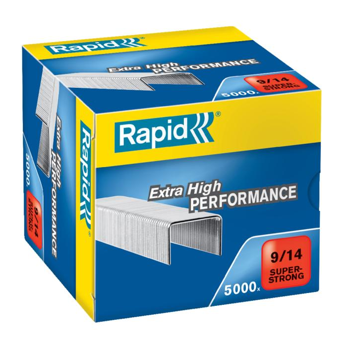 Jedinečné spinky pre veľkokapacitné zošívanie určené špeciálne pre zošívačku Rapid HD9. Zaručujú najlepšie výsledky. Špičková kvalita a sila. Zošívací výkon 80 až 110 listov (80 g/m2). Krabička obsahuje: 5.000 spiniek. Rozlišovací systém typov spiniek pomocou farieb (SUPER STRONG = Červená). Dĺžka nožičky spinky 14 mm. Galvanizovaný super silný drát pre maximálny výkon. Ostré konce pre maximálnu penetráciu