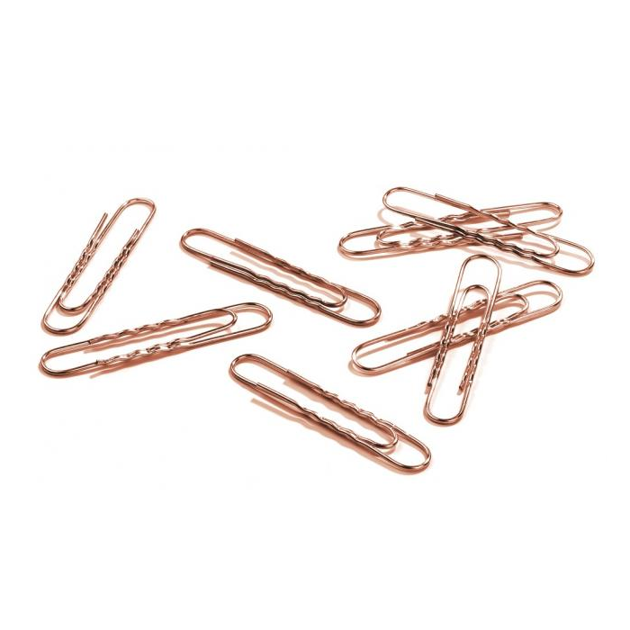 Veľké spisové spony v medenej úprave.
