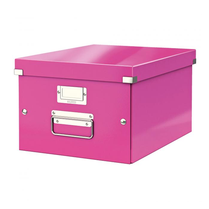 Archivačná krabica s vekom vo výrazných farbách WOW. Pevné a stabilné prevedenie. Materiál silný drevnatý kartón potiahnutý laminom. Rámik na štítok, vystužené rohy krabice a spojovacie cvoky vyrobené z kovu. Inteligentná skladacia konštrukcia - rýchle a jednoduché zloženie bez nutnosti použitia skrutiek a opätovné rozloženie, keď krabice práve nepoužívate. Dodávané rozložené. Väčšie balenie 6 ks. Univerzálna stredná archivačná krabica na uloženie dokumentov formátu A4, dosiek, obálok, katalógov a pod. Robustné kovové úchyty na jednoduchý prenos. Rozmery 265 × 188 × 335 mm.