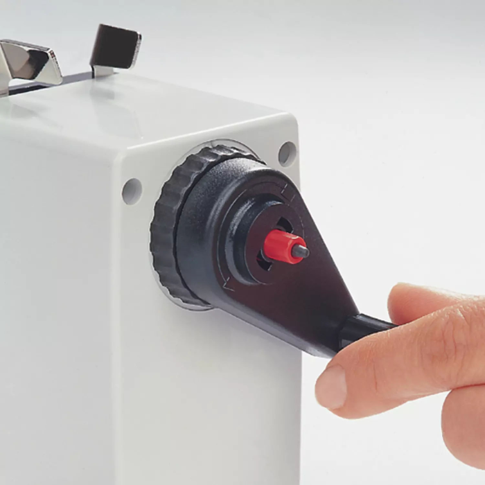 Značkové mechanické strúhadlo s vysokokvalitnými oceľovými nožmi a nastaviteľným tvarom hrotu, z plastu, na tuhy a ceruzky priemeru do 12 mm v atraktívnom dizajne s automatickým prichytením ceruzky pri strúhaní a jej automatickým uvoľnením po zastrúhaní.