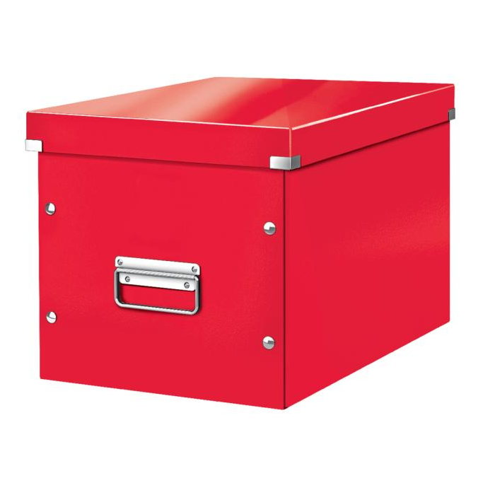 Atraktívna a štýlová krabica na ukladanie vysokých predmetov alebo vecí s oblým tvarom. Rýchle a jednoduché poskladanie vďaka gombíkovému mechanizmu a možnosti zloženia (ak nie je krabica potrebná, je možné ju rozložiť a zaberie menej miesta). Moderný dizajn a farby osviežia vašu kanceláriu aj domov. Lesklý laminovaný povrch vytvára prvotriedny vzhľad, zvyšuje odolnosť a ľahko sa čistí. Odolné kovové príchytky na pohodlnú manipuláciu. Patentovaná konštrukcia zaručuje vyššiu ochranu proti náhodnému otvoreniu krabice pri prenášaní ťažkých vecí. Materiál pevný kartón s polypropylénovou lamináciou. Rozmery 320 x 310 x 360 mm. Farba červená.