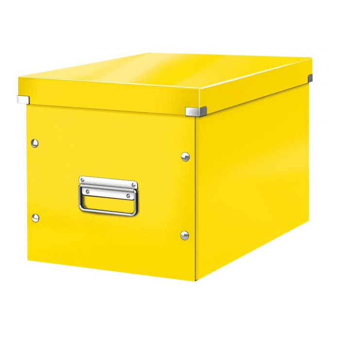 Patentovaná konštrukcia zaručuje vyššiu ochranu proti náhodnému otvoreniu krabice pri prenášaní ťažkých vecí. Materiál pevný kartón s polypropylénovou lamináciou. Rozmery 320 x 310 x 360 mm. Farba žltá.