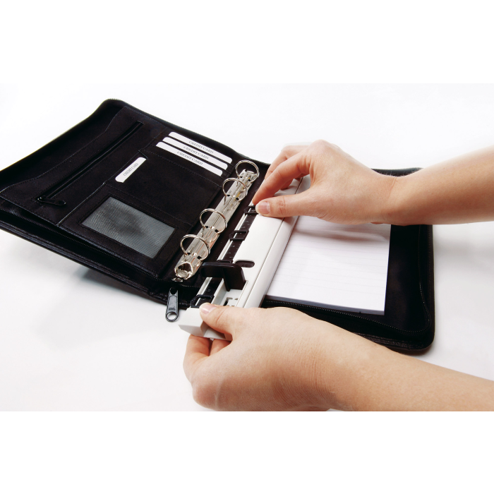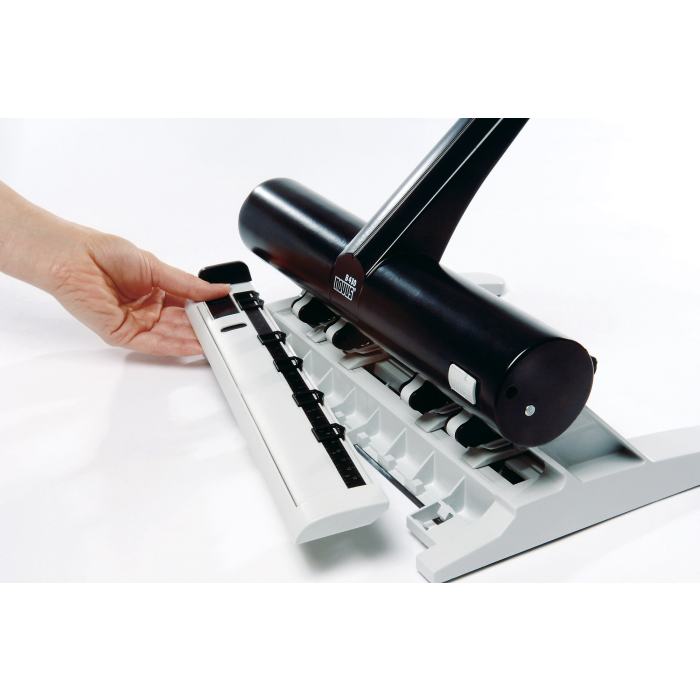 Ručná dierovačka, vybavená štyrmi posuvnými dierovacími hlavami s variabilným nastavením ľubovoľnej kombinácie dierovania a aretáciou horného dielu na ľahké uloženie. Možnosť dokúpenia páru ďalších dierovacích hláv na predierovanie maximálneho počtu 6 otvorov (6mm), obj.kód NO250478. Hmotnosť 2280 g. Záruka 10 rokov.