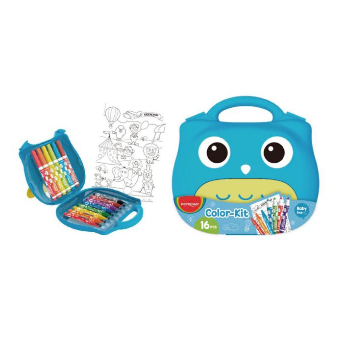 KEYROAD detská sada na kreslenie a maľovanie 16 dielov. Sada obsahuje: Jumbo fixky 6 ks, Jumbo voskovky 8 ks, veľká omaľovánka 1 ks, boxík s rukoväťou 1 ks. Séria Baby Line - pre najmenších. Farba: mix farieb.