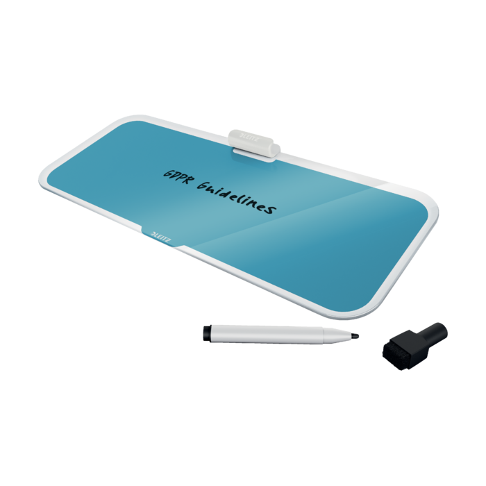 • Sklenená stolná tabuľka Leitz Cosy je unikátny nástroj na opakované písanie poznámok, suchým popisovačom jednoducho napíšete dôležité informácie, kedykoľvek ju utriete a môžete písať znova.