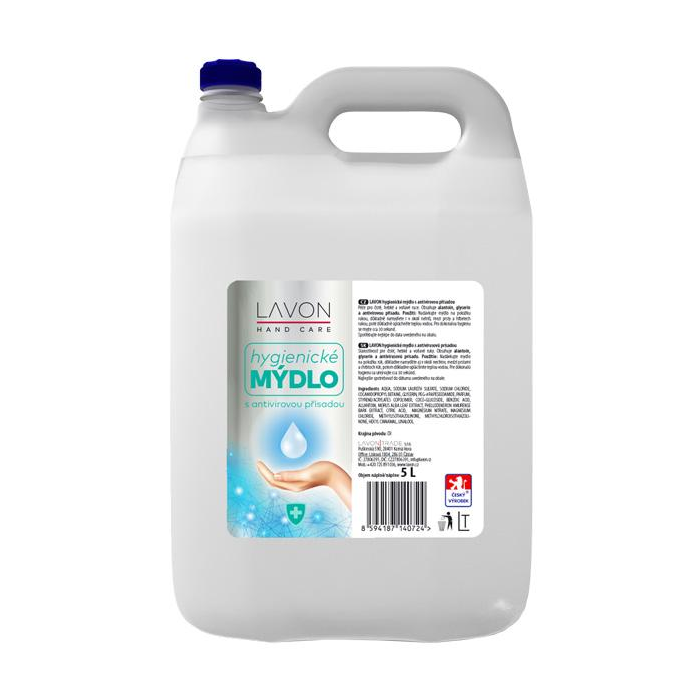 Lavon hygienické mydlo s antivírusovou prísadou je tekuté mydlo na umývanie rúk. Vďaka vyváženému zloženiu je mydlo vhodné aj k častému umývaniu a zanechá vaše ruky hebké a voňavé. Má príjemnú kvetinovú vôňu.