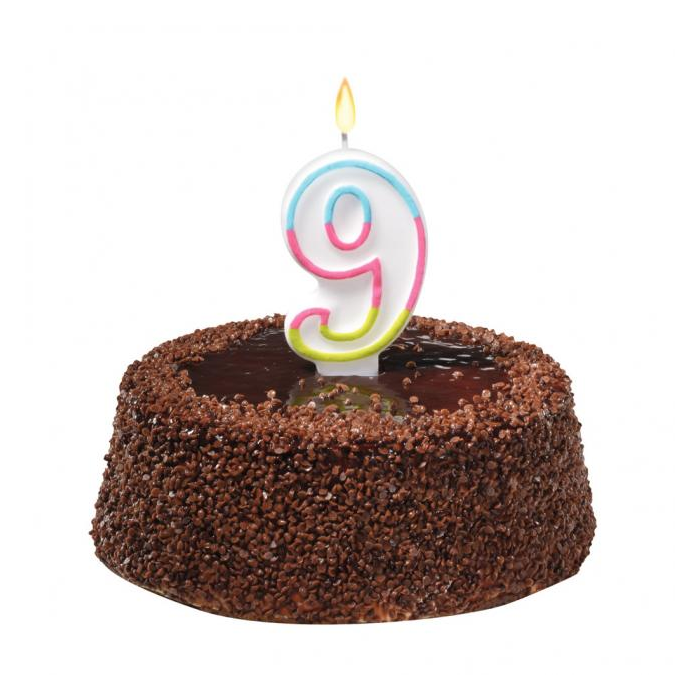 Sviečka `9` - výška: 9 cm, balenie na blistri.