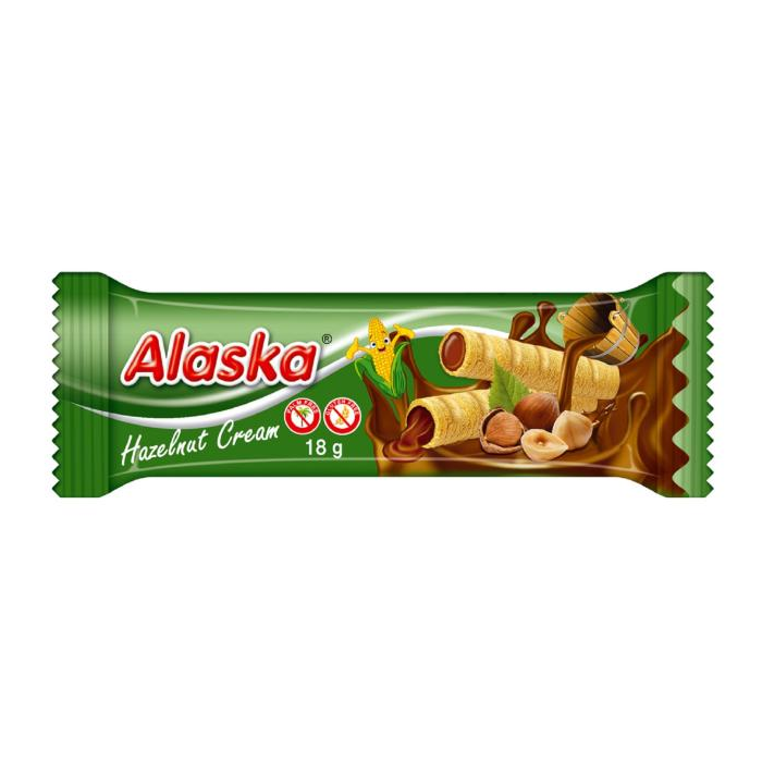 Dve jemné kukuričné trubičky Alaska plnené orieškovým krémom (83%). Obľúbená pochúťka na desiatu a olovrant. Vyrobené na Slovensku.