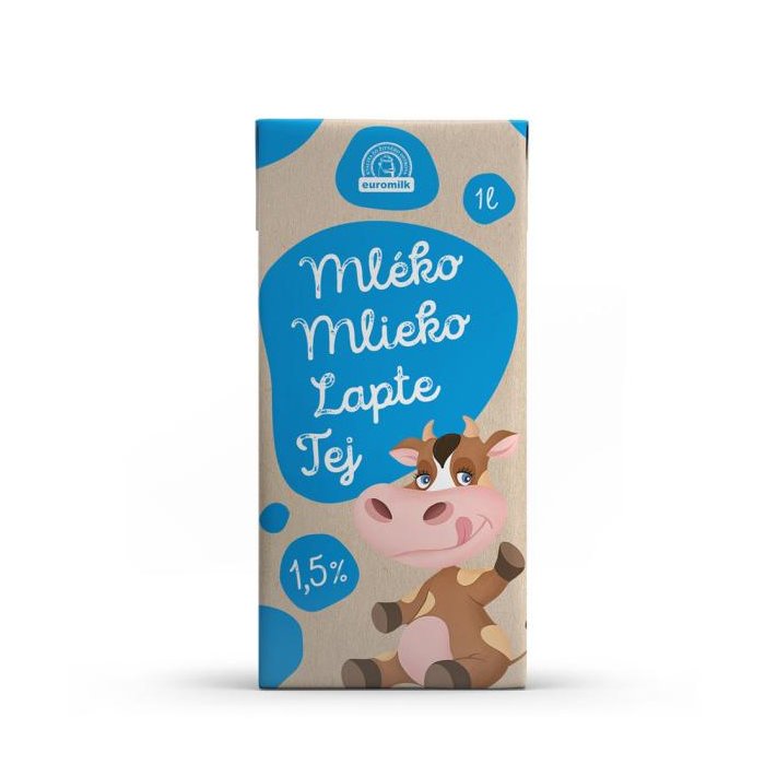Trvanlivé mlieko polotučné. Ošetrené UHT ohrevom, homogenizované. Tuk najmenej 1,5% hmot.