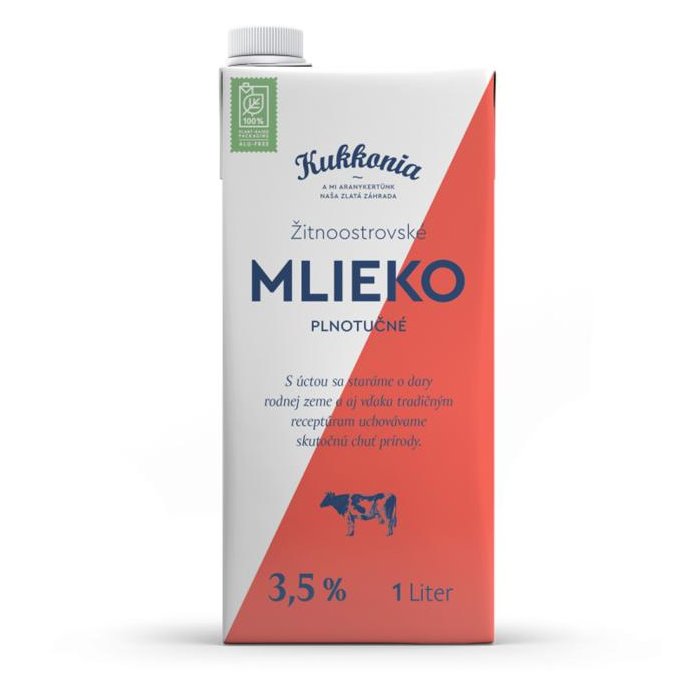 Trvanlivé mlieko plnotučné. Ošetrené UHT ohrevom, homogenizované. Tuk najmenej 3,5% hmot.