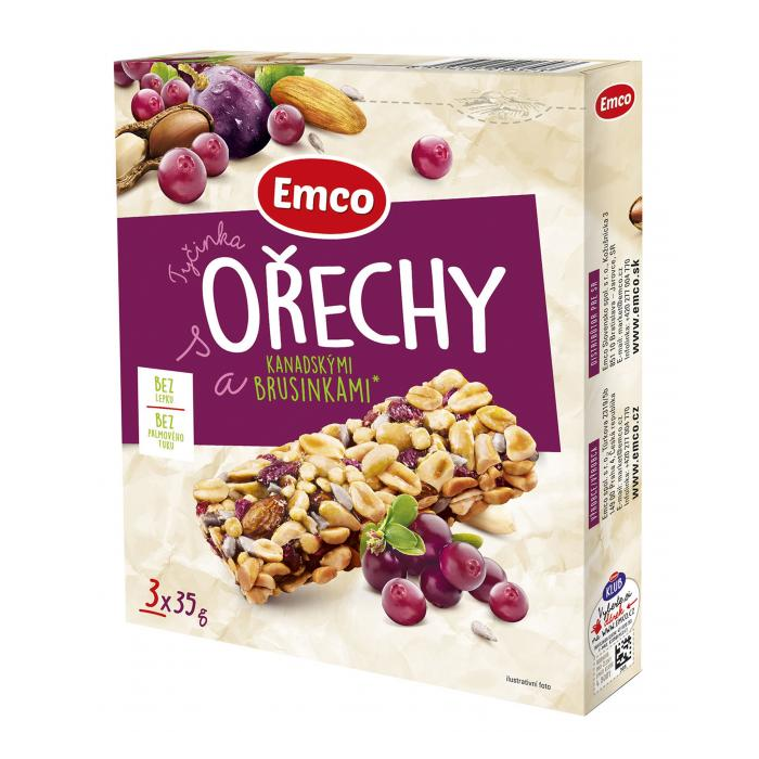 Emco Mysli Ovsená tyčinka orechy a brusnice 3x35 g.