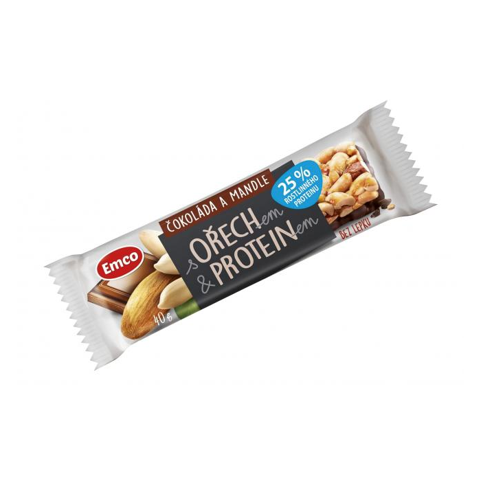 Arašidová tyčinka so sójovým proteínom, čokoládou a mandľami