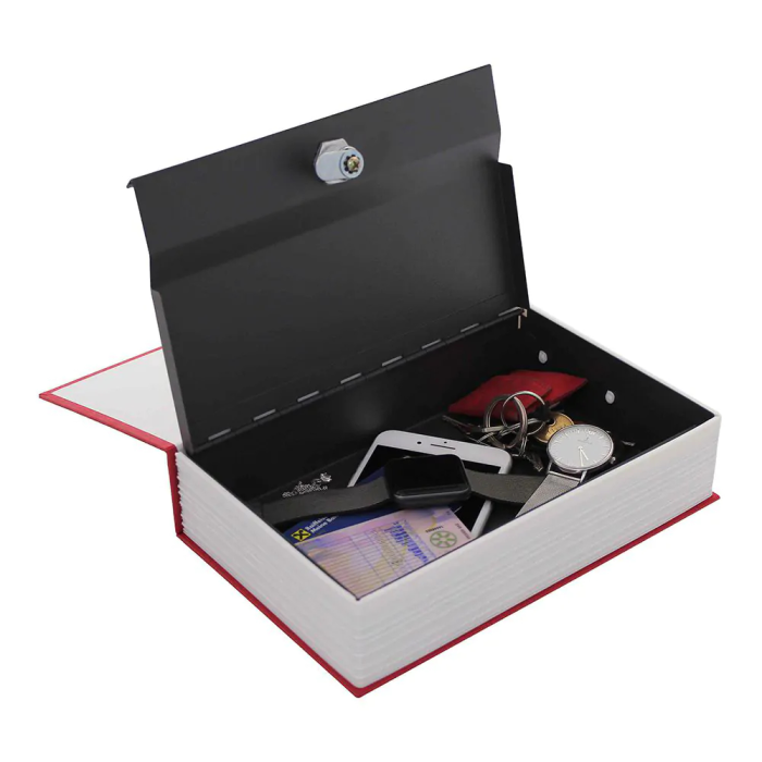 Elegantná červená kazeta na uchovanie cenných drobností v domácom prostredí. Ideálne sa hodí medzi vašu zbierku kníh, prípadne na poličku, kde skvelo zapadne. Vaše drobné tajomstvá tak nebudú na očiach, aj vďaka schovanému cylindrickému zámku.