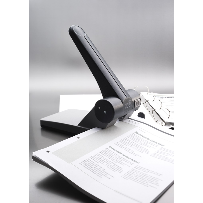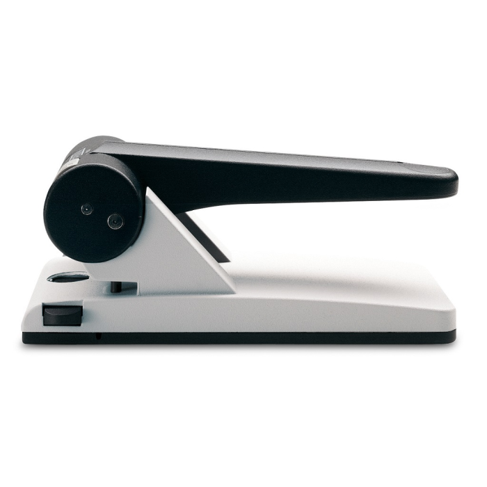 Veľkokapacitná dierovačka s posuvným pravítkom a aretáciou horného dielu pre ľahké uloženie a pákovým prevodom pre optimálny dierovací výkon. Rozpätie dier 8 cm. Hmotnosť 1250 g. Záruka 10 rokov.
