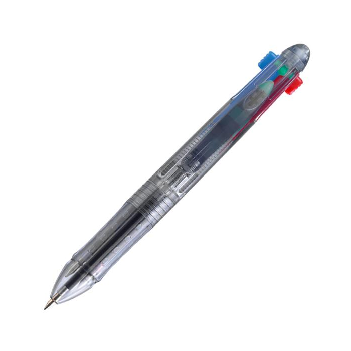 Štvorfarebné guľôčkové pero - medium, plastové telo pera, balenie na blistri.