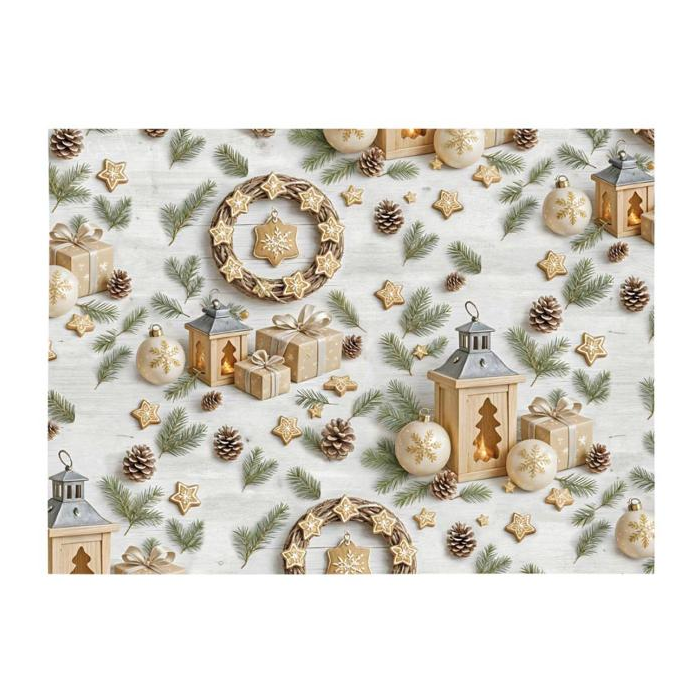 Tento krásny baliaci papier Klasik prináša elegantnú kombináciu prírodných tónov a tradičných vianočných motívov - od zlatistých stromčekov a svietiacich lampášov po jemné vločky, šišky a hviezdičky. Vzor na svetlom podklade dodáva baliacemu papieru nadčasový šarm a sofistikovanosť. Perfektný pre tých, ktorí chcú svoje darčeky obliecť do štýlu, ktorý poteší každého pod vianočným stromčekom.