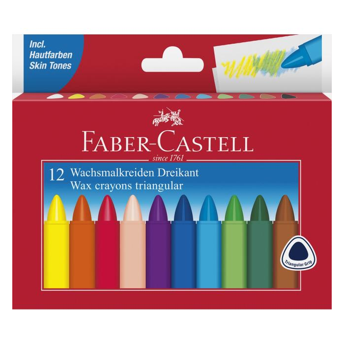Voskovky s ergonomickým trojuholníkovým tvarom. Jasné farby vďaka väčšiemu množstvu pigmentu. Vhodné pre škôlky aj školy. Vode-odolné. S papierovým obalom pre čisté prsty. 12 žiarivých farieb v balení.
